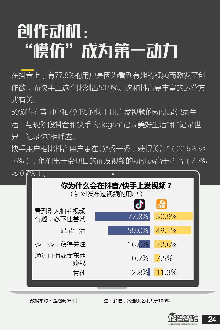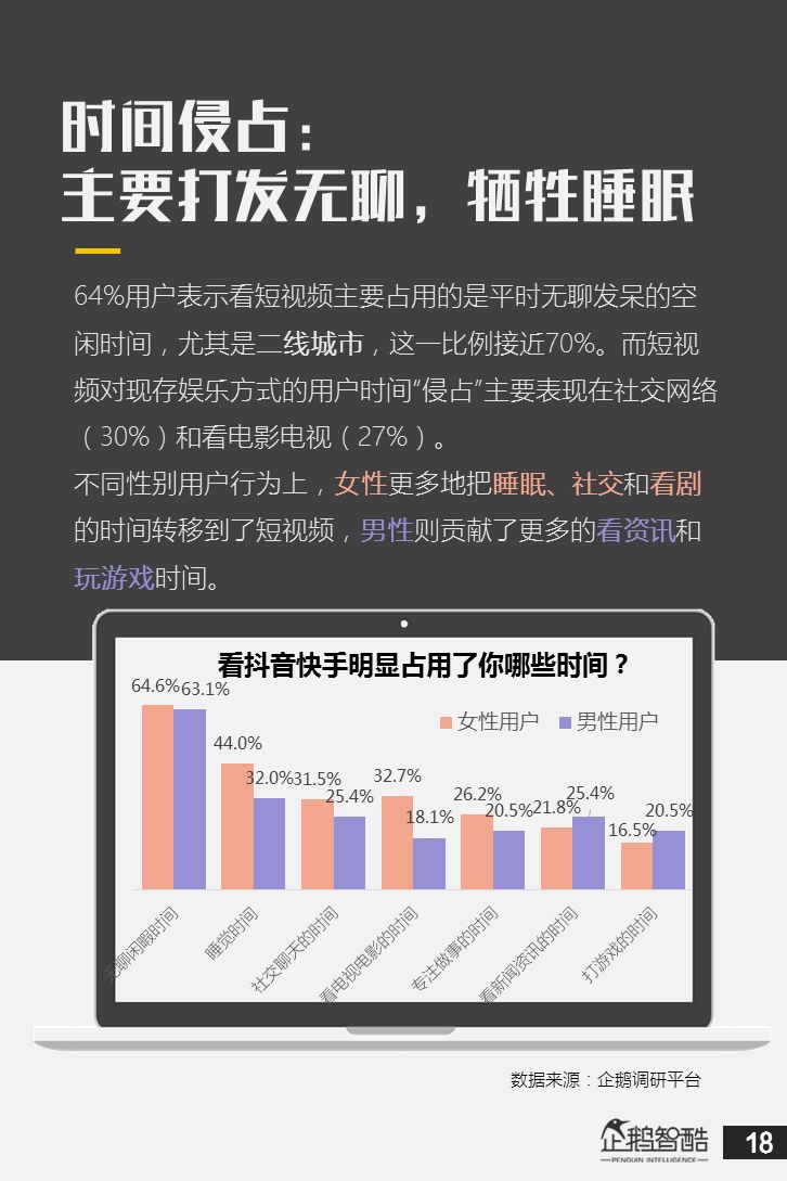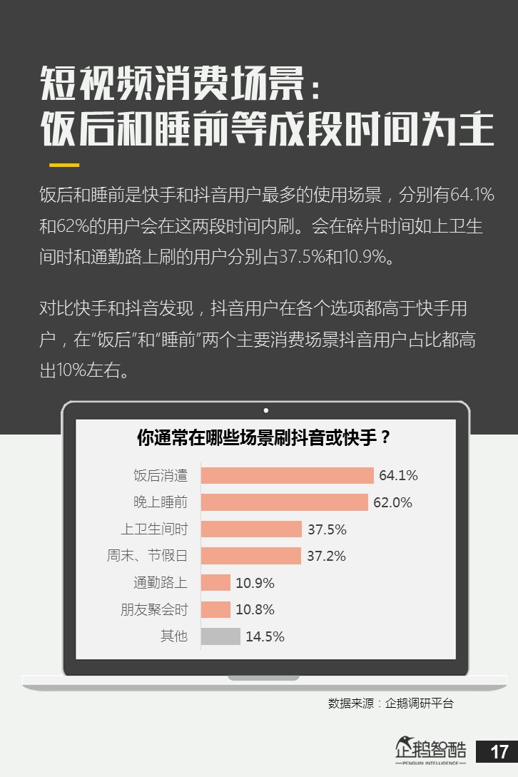 - 用户使用快手和抖音来打发无聊时间,睡前的成段时间是用户的典型使用场景之一; - ……