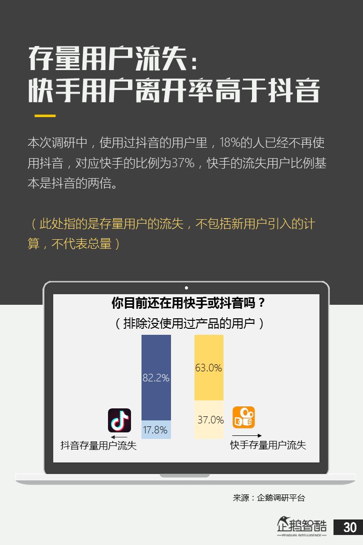 为了更好地理解这个对中国移动互联网所有参与者而言都不可忽视的新市场和新红利,企鹅智酷旗下“企鹅调研平台”于2018年3月,对全国范围的网民进行了广泛调研,筛选出快手现有用户1080名,抖音现有用户1104名,两者重合现有用户630名,并结合QuestMobile的大数据监测,最终研究发布了这份《快手&抖音用户研究报告》。