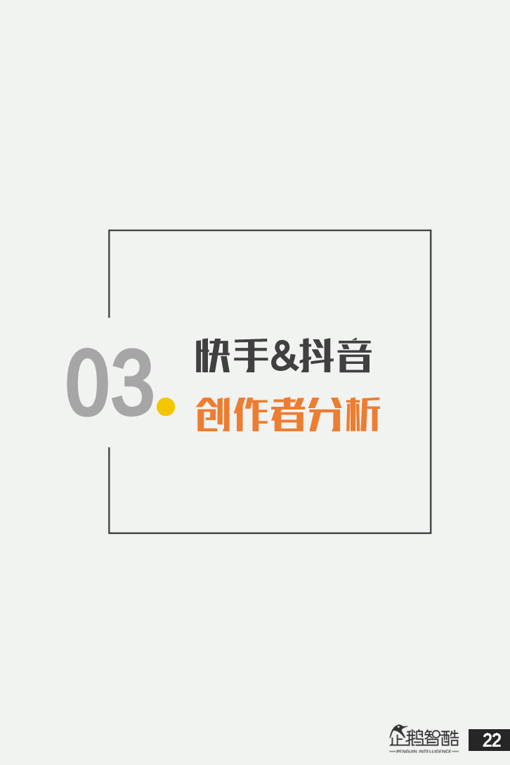 这是一份《快手&抖音用户研究报告》,从社交短视频行业速写,快手&抖音的消费者分析、创作者分析,用户流动流失,重度用户特写、用户声音等几个方面,为你剖析亿级新用户红利的秘密。