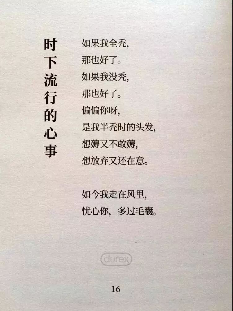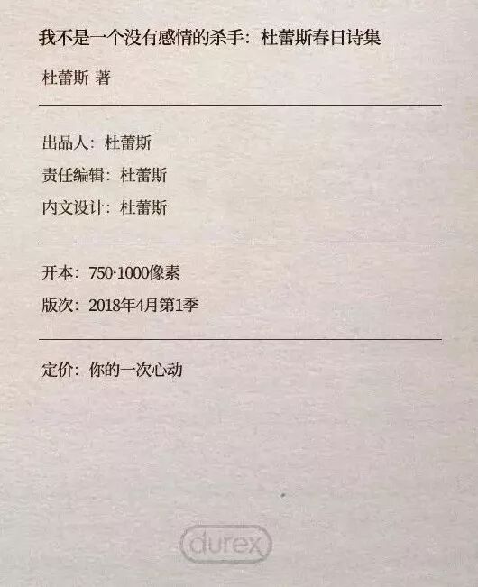 除了卖香肠,杜蕾斯对于写诗也是认真的。