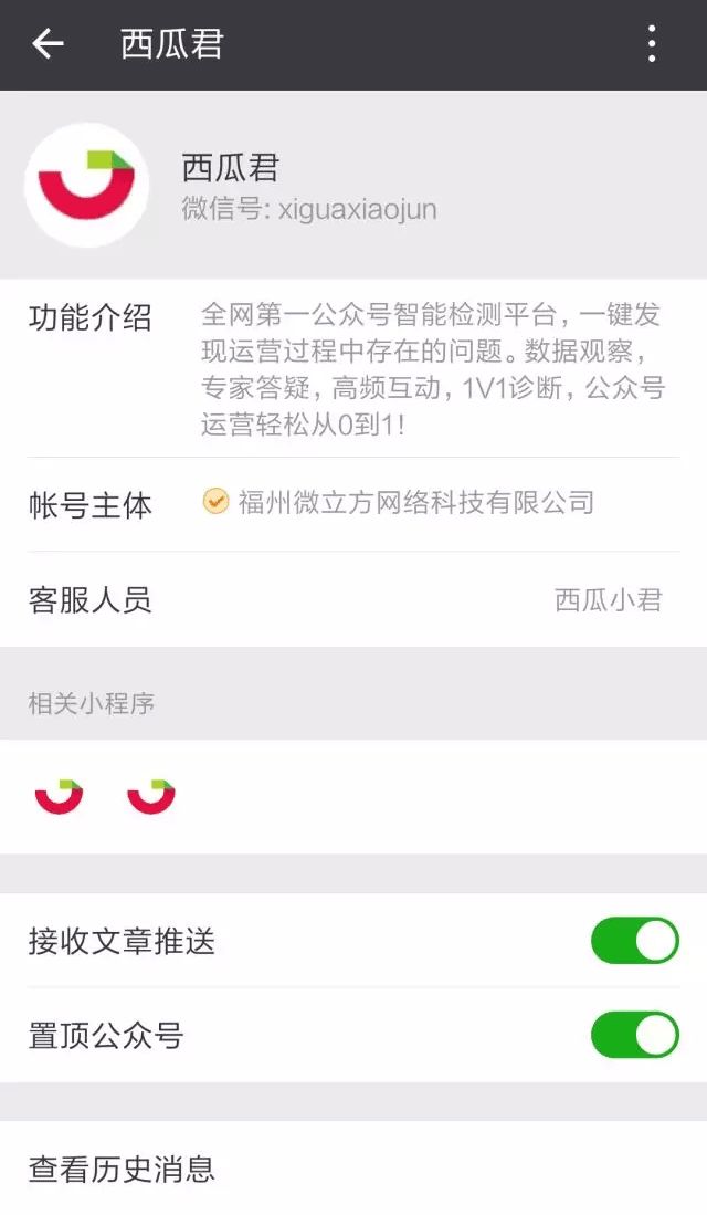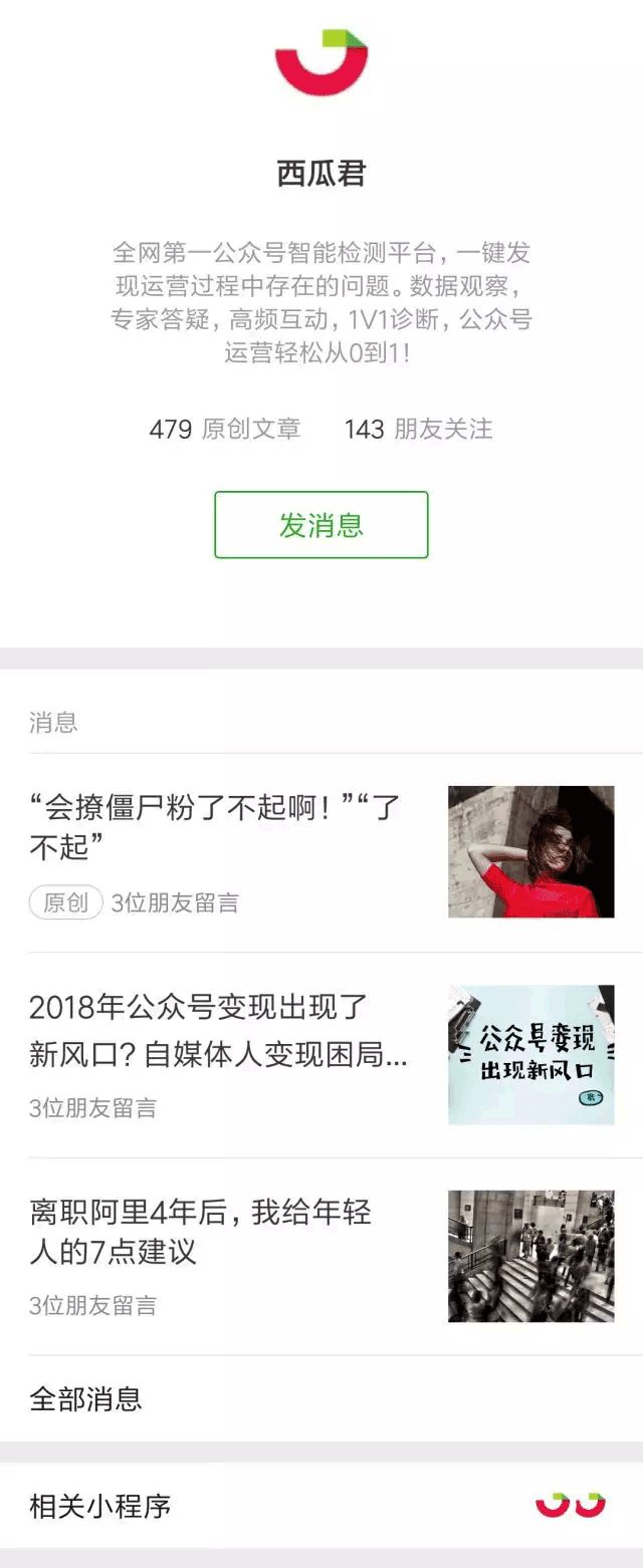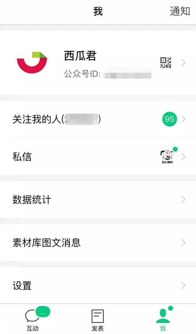 ▪我:查看修改公众号基本资料和数据,站内信会通过右上角的通知推送。