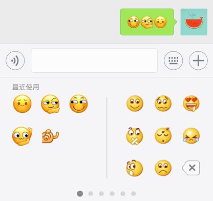 最近使用的emoji表情会在表情包左侧独立展示,具体如下: