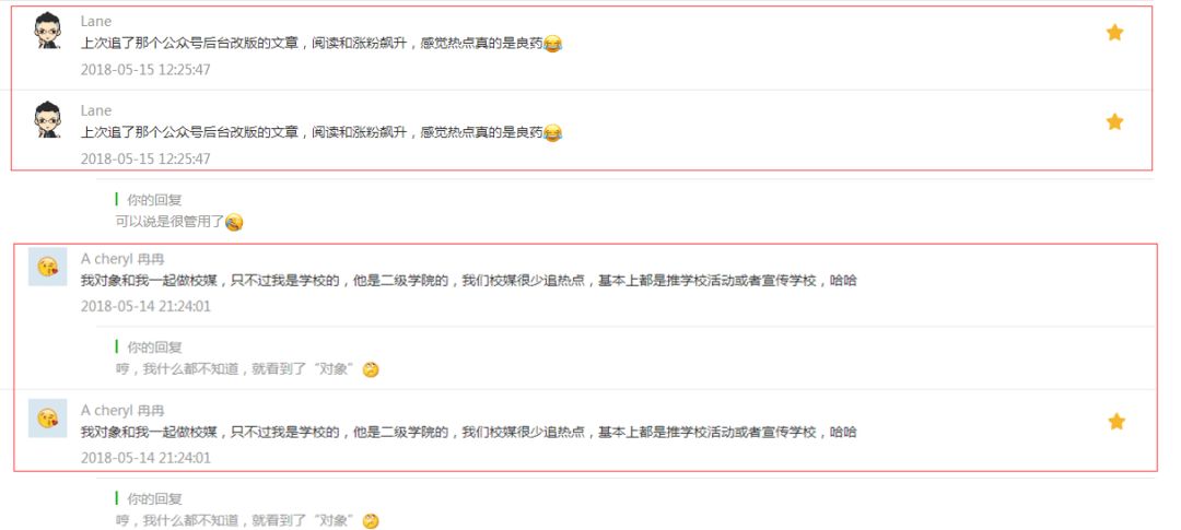 粉丝同一条留言显示两次,针对其中一条精选或回复之后,效果一并作用于另一条,但前端只显示一条留言。