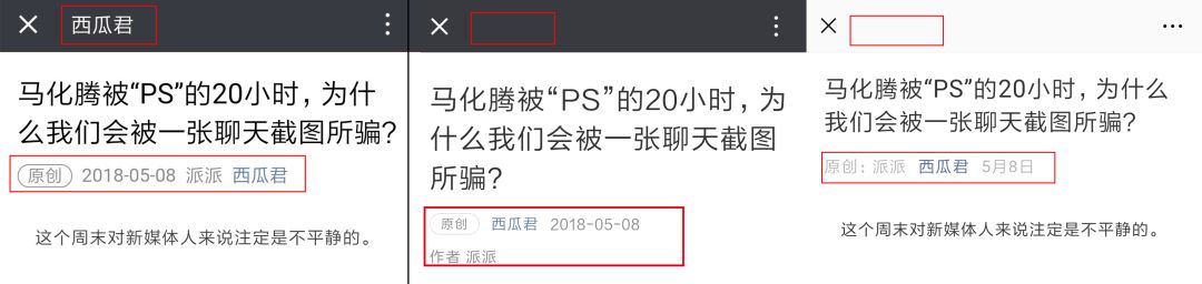 1.公众号名称不展示,原创及作者栏位置调整