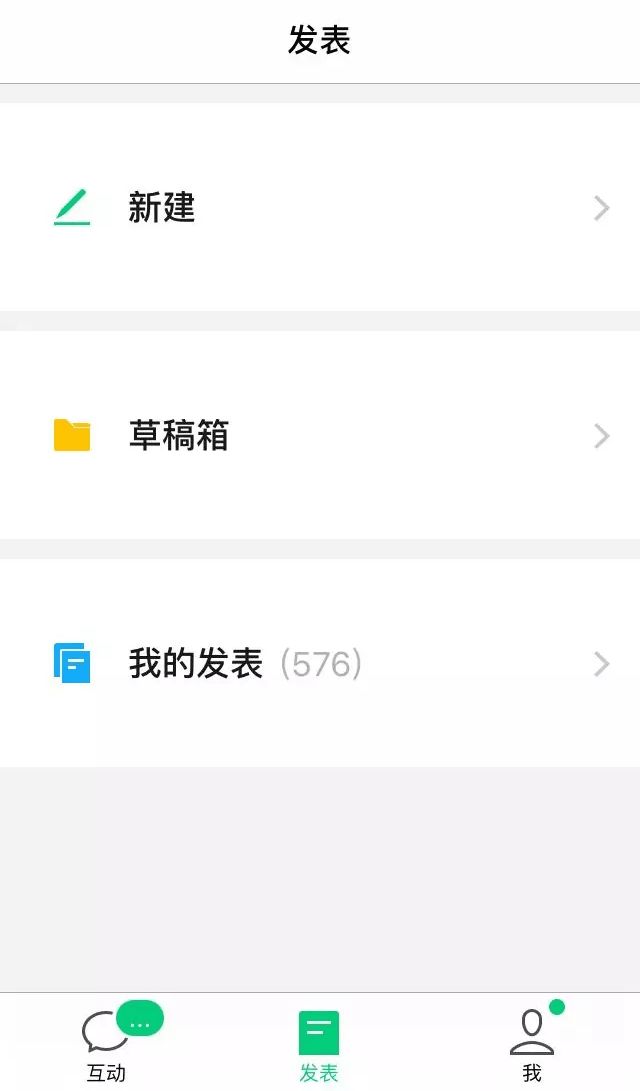 APP目前设置了“微信登录和邮箱登录”两种方式,主界面主要分为三块:互动、发表、我。