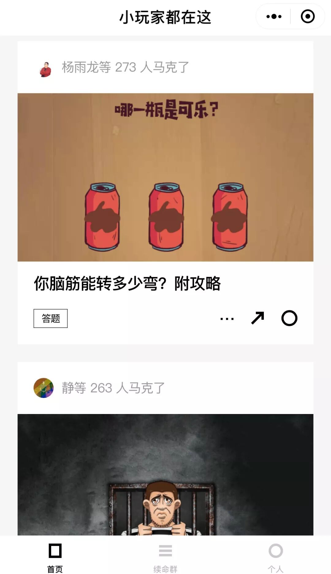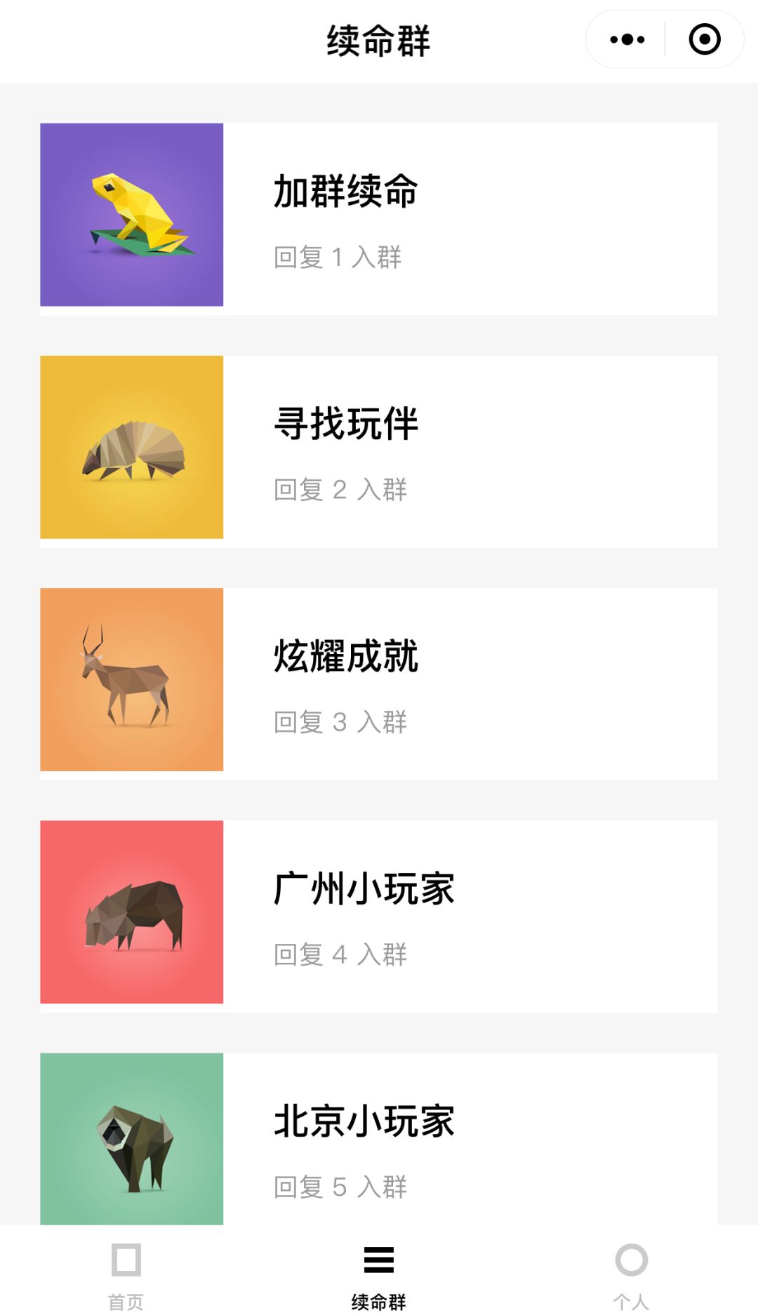 另外,在小游玩家中还有一个叫“续命群”的界面,基于不同需求,用户可以加入不同的小程序群。
