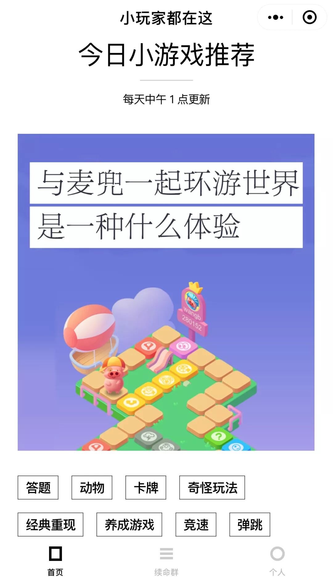 每天中午1点,小游玩家会在首页推荐一款值得玩的小游戏。推荐页面有很详细的游戏介绍,每篇文末还会附上这款小游戏的名称或二维码,方便用户查找。