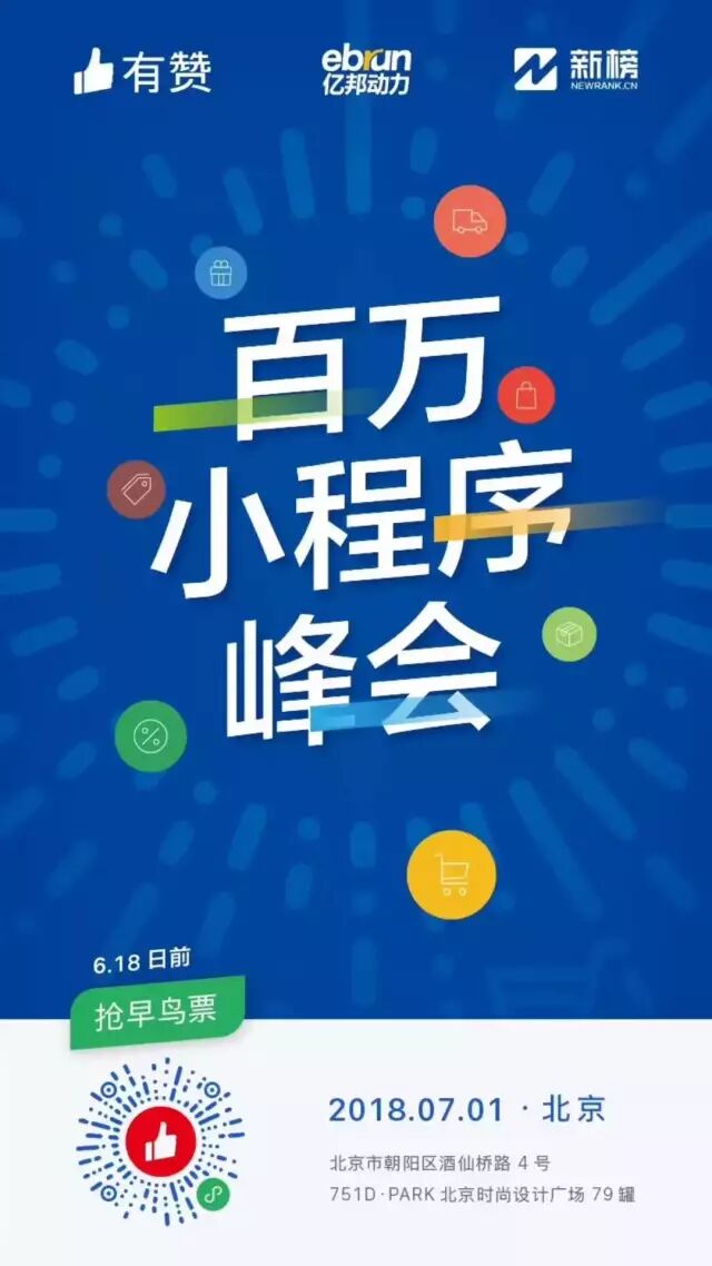另外,7月1日在北京,有赞主办,新榜联合主办了另外一场2000人的小程序峰会,有赞CEO白鸦将带领大家走进瞬息万变的小程序电商战场!