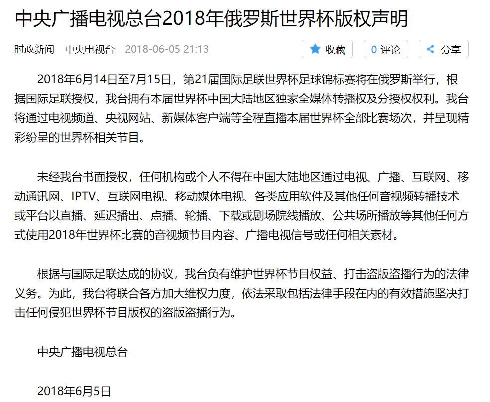 中央广播电视总台明确发布版权声明,