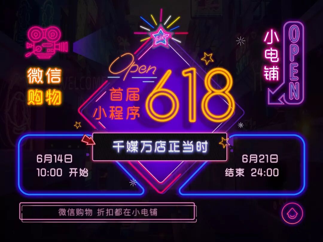 今年618,SEE小电铺联合2000多个头部自媒体和1200个品牌,面向2000万小电铺用户和数亿自媒体粉丝,举办首届小程序狂欢节,活动时间从6月14日持续到6月21日。