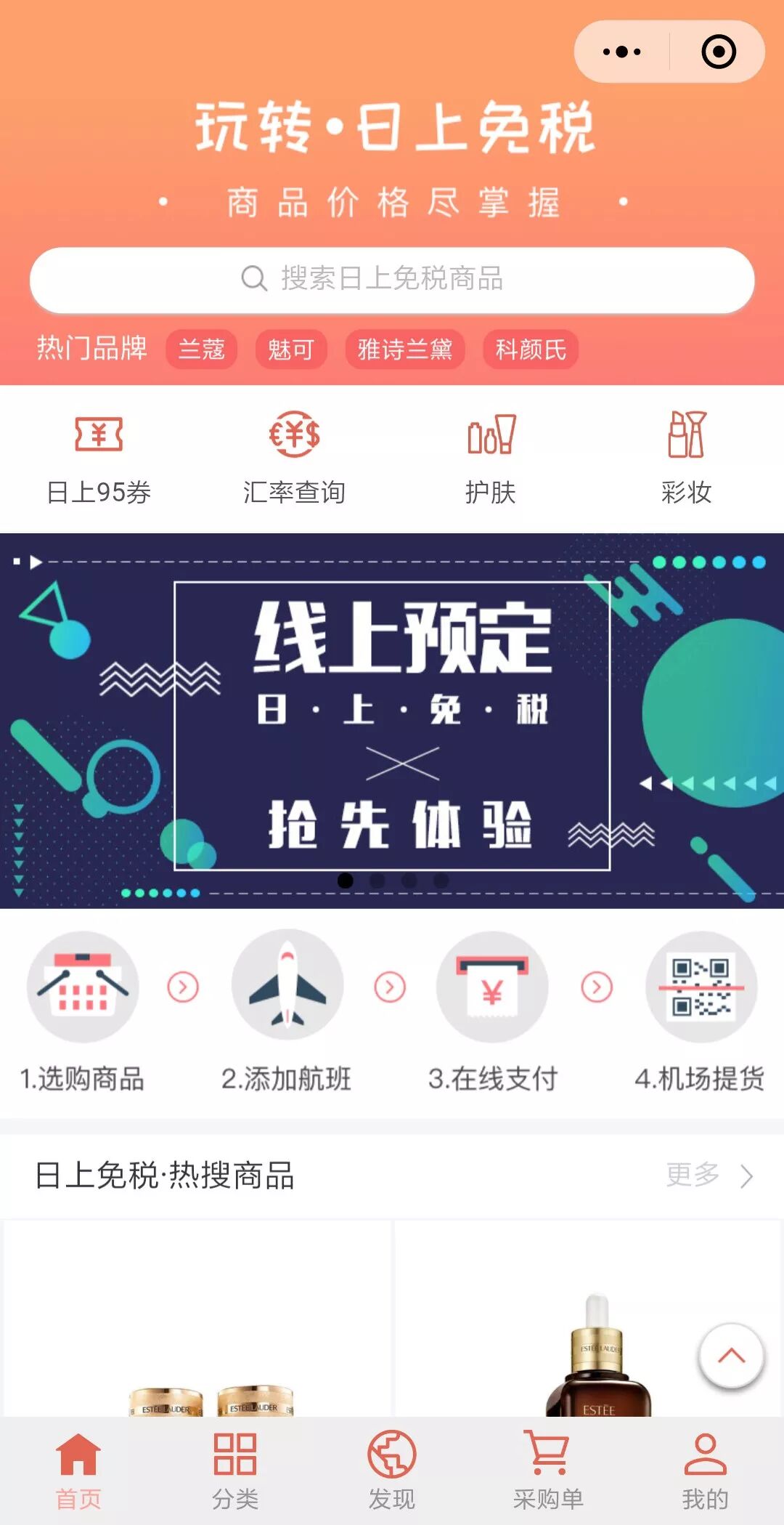 2017年10月,“玩转全球免税”上线1.0版本。第一个版本的功能很简单,用户可以通过小程序查询日上免税店商品的价格,获取免税店优惠券。