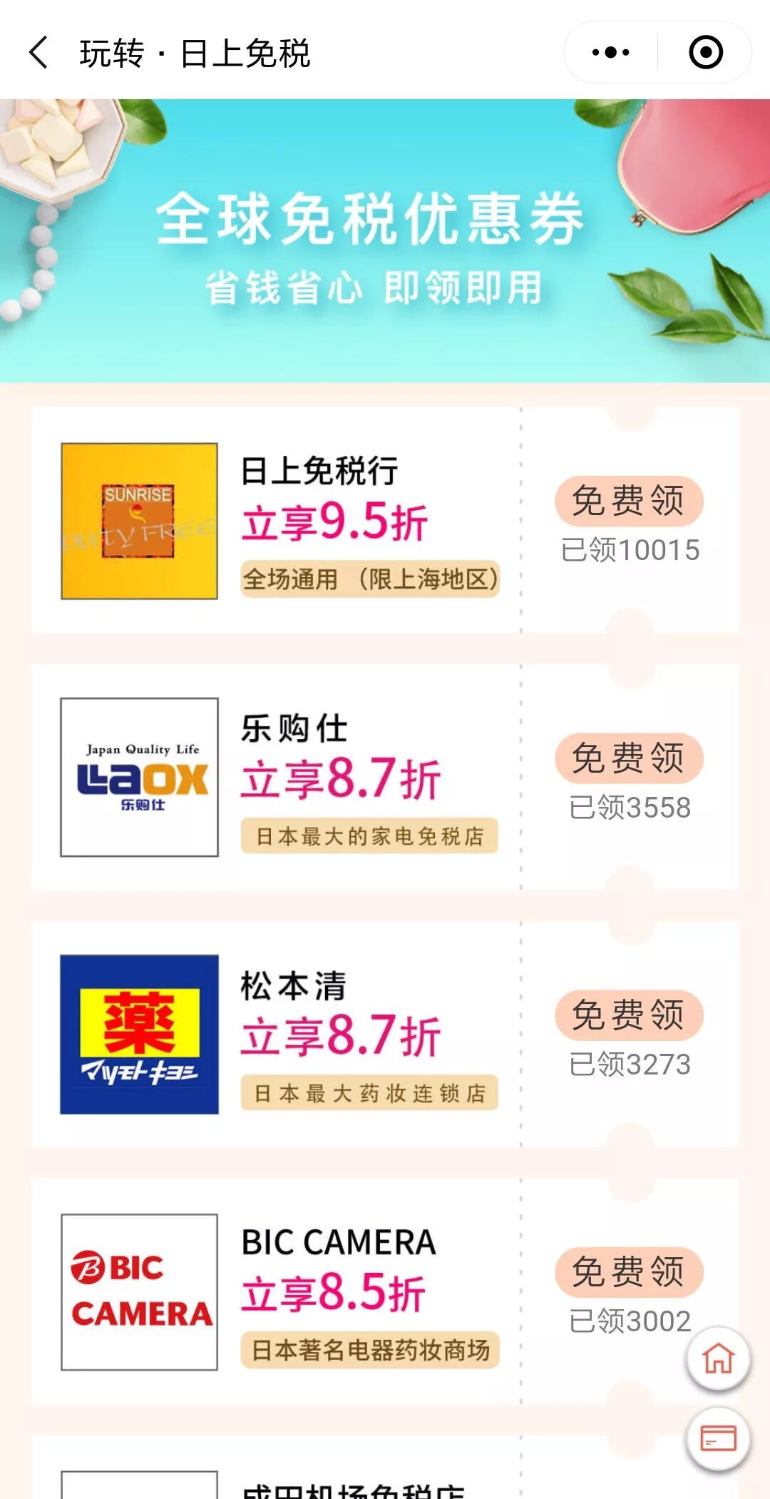 去年10月,一款名为“玩转全球免税”的小程序应运而生。除了支持查询上海浦东机场日上免税行的商品价格外,“玩转全球免税”还提供汇率查询、比价,以及日本、泰国、中国台湾等机场免税优惠券,旅客领取后即可到指定的机场及市内免税店使用。