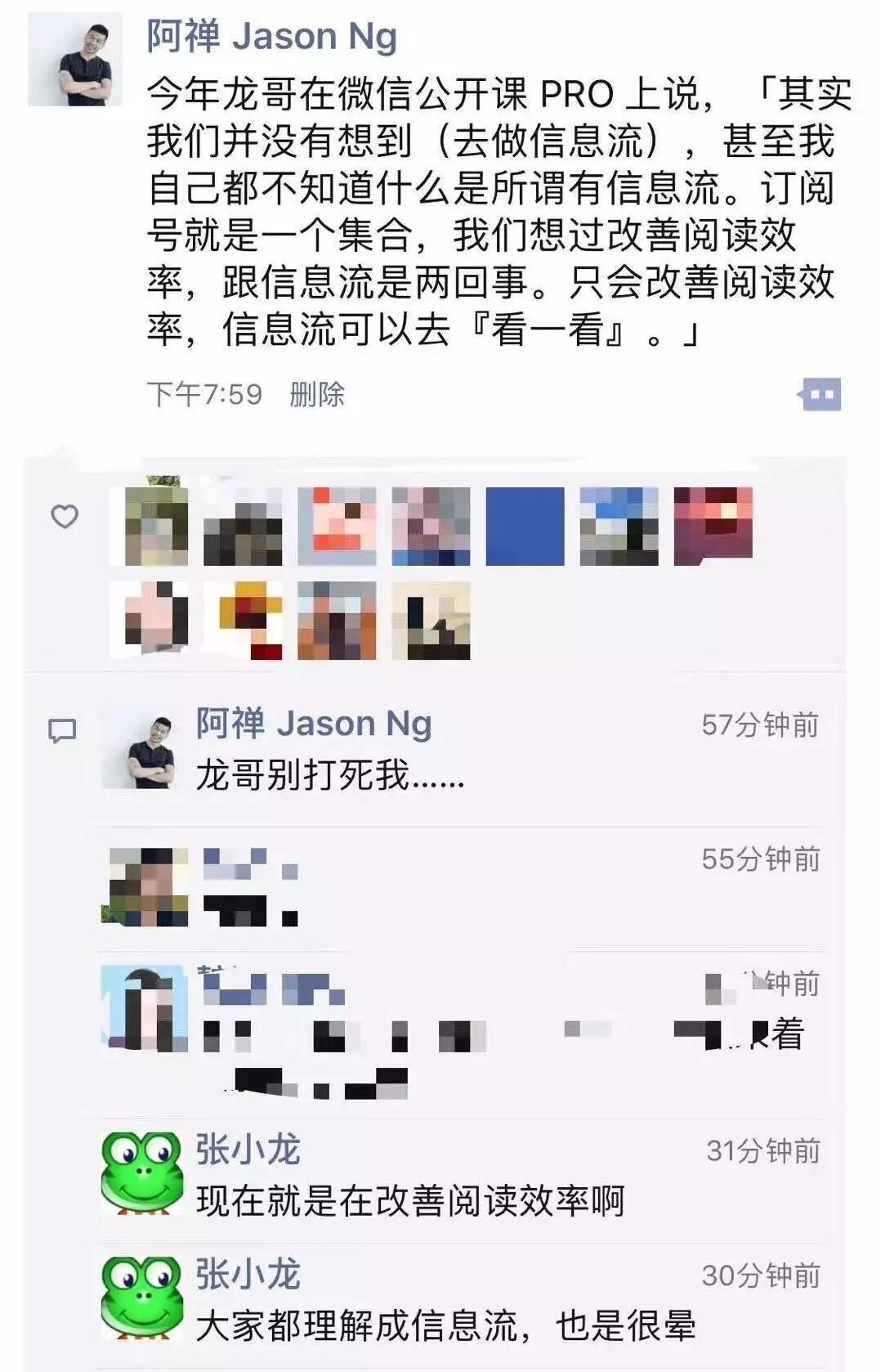 从一张流传出的朋友圈截图来看,张小龙也否认这是信息流。