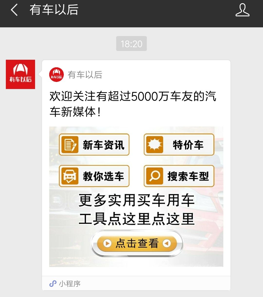 公众号“有车以后”自动回复小程序