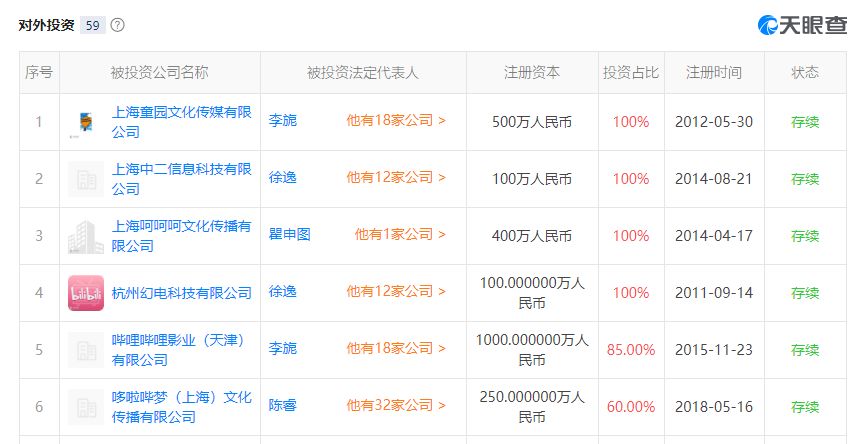 比如2015年投资的千里眼文化和sunflowers两家动画公司,曾参与B站拜年祭的制作。再比如投资了《狐妖小红娘》《王牌御史》的制作公司绘梦动画,目前发展势头很亮眼,最近还跟B站合作成立了一家名为“多啦哔梦”的动画公司。