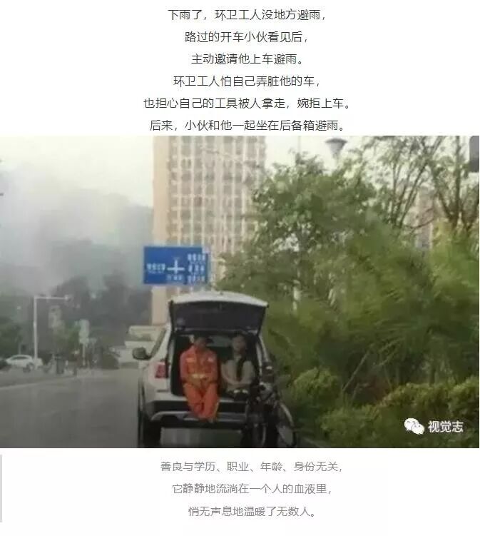 视觉志曾经发布过一篇轰动朋友圈的文章《谢谢你爱我》,以文字+gif图片/静态图片呈现了18个人与人、人与动物、动物与动物的故事,这些故事让人觉得非常感动,正属于积极情绪。