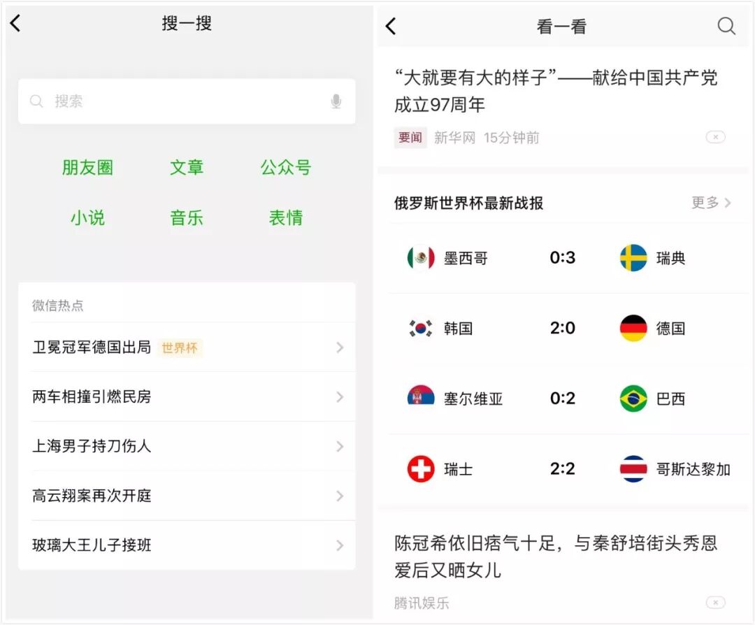在我看来,微信布局信息流广告的地方不在于订阅号那个入口,而是在“看一看”、“搜一搜”和“朋友圈”。