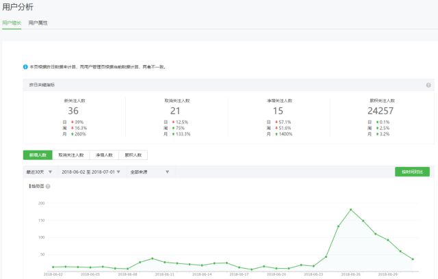 用户来源分析指的是用户增长分析,包括净增关注、积累关注、用户增长来源。