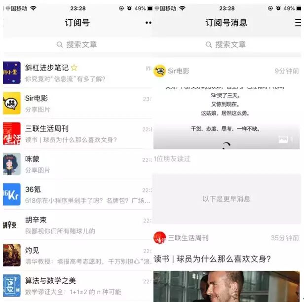 这种情况下,粉丝品牌价值被弱化,内容的价值提升。这也是订阅号的初心,强调内容。在单纯的订阅号体系里粉丝是使用权,而不是所有权。想要养粉丝的,还是得结合社群,服务号,小程序等。或者干脆自己做App。