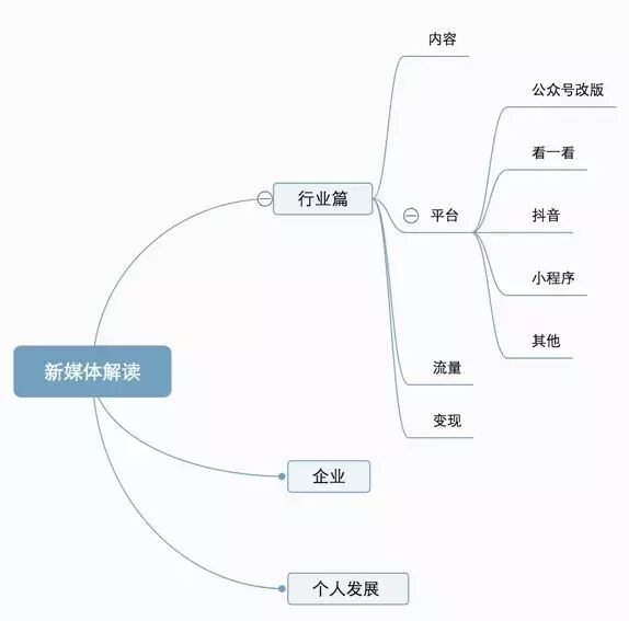 本文主要包括三大部分:行业篇:包括内容,流量,平台和变现。剩下的为企业篇和个人篇。整体7500字,阅读大约需要15分钟。下图为文章的结构