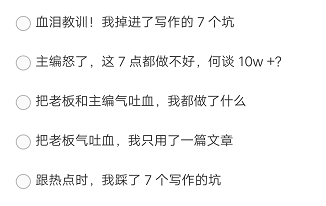 本文作者用血泪总结出来了起标题的一些经验,希望小伙伴们看完后可以少走弯路。他总结了起标题不能踩的 8 个大坑,快看看你有没有踩中吧~