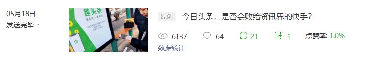 但是我又犯了一个错,和读者无关。今日头条和快手之间的你死我活,他们并不 care,所以当日阅读量只有 4K+。