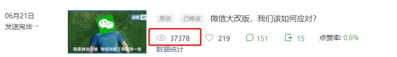 我们想能不能差异化标题,正好文中第三部分是应对这次改版的方法,所以我们就用了《微信大改版,我们该如何应对?》这个标题。