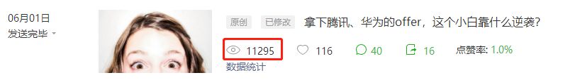后来经过贤哥的指正,就变成了《拿下腾讯、华为的offer,这个小白靠什么逆袭?》,阅读量也不错。