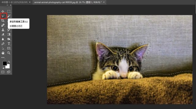 2.打开你想要加入的图片,用左侧工具栏里的“多边锁套工具”,大致扣出你想要的形状,然后“Ctrl+C”、“Ctrl+V”复制一份。
