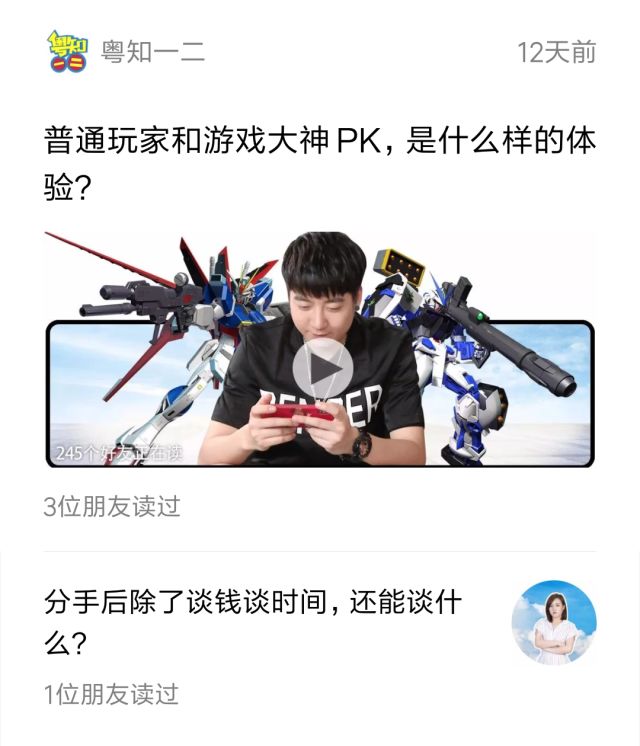 视频号也可以像“粤知一二”这样,在头图里加上视频播放的图标,西瓜君每次都会习惯性点击“播放”。