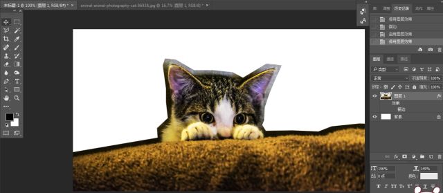 3.将扣好的猫咪图层,拖入最开始建立的空白画布中。