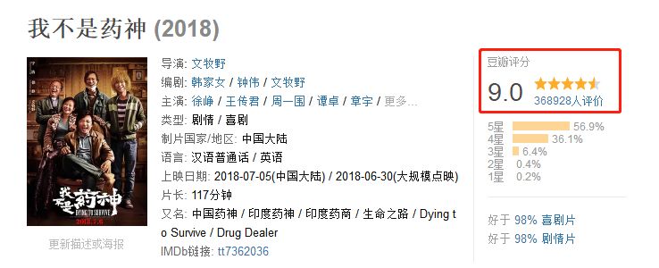 自点映以来,《我不是药神》的口碑一路飙升,上映 4 天便突破 10 亿大关。