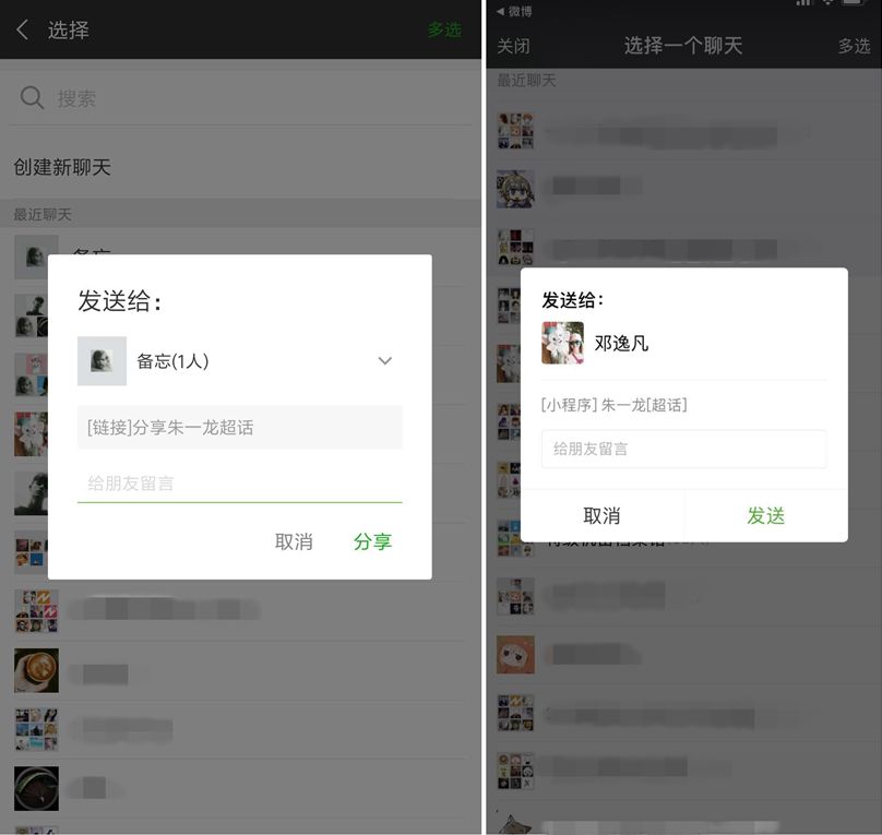 左图是此前的版本,右图是正在灰度测试的小程序分享
