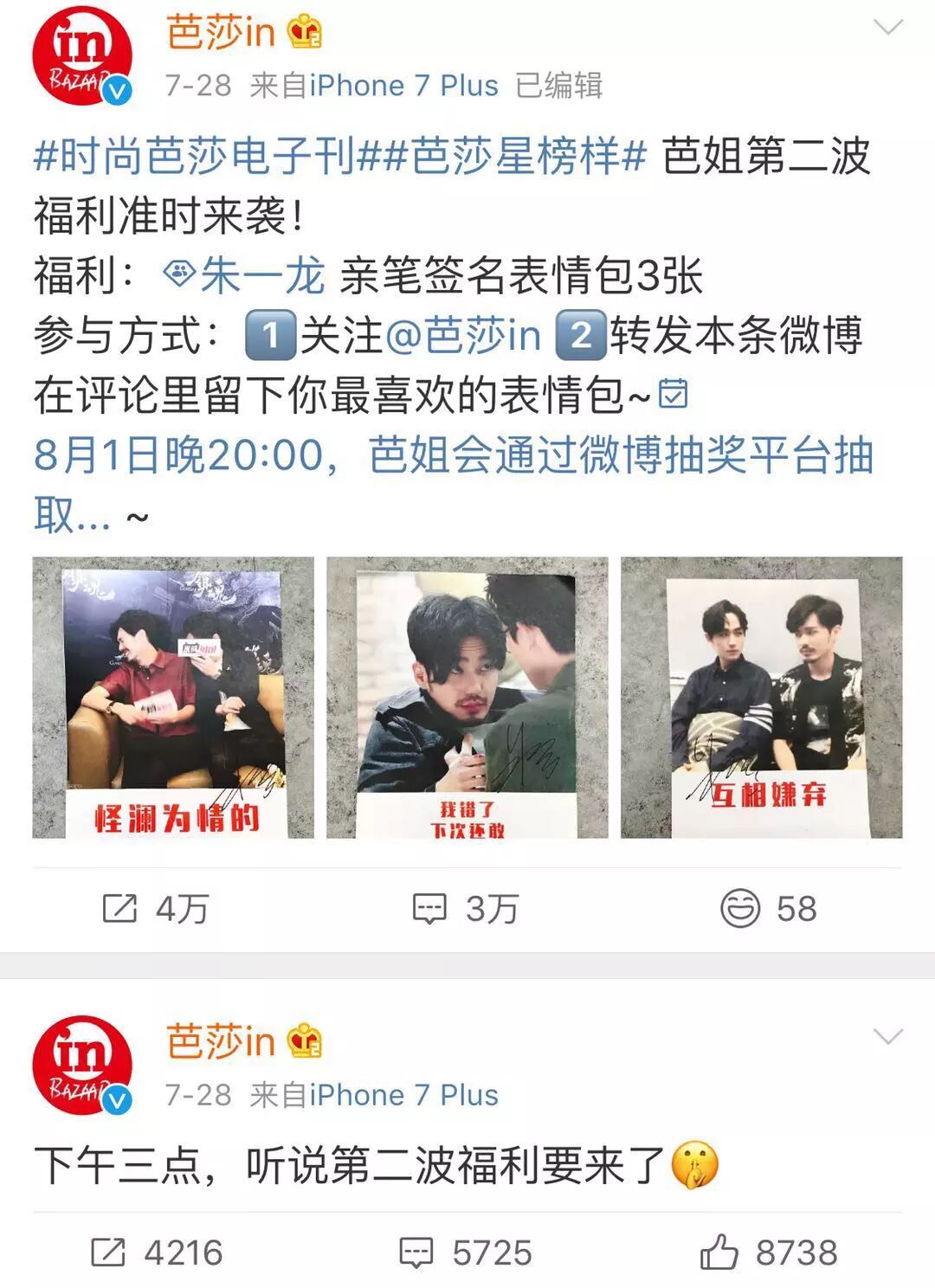 电子刊上线后,芭莎in继续安排爆点和福利,比如送签名表情包、大片海报,发布完整视频等,每天放一个爆点出来,将热度持续了整整一周。