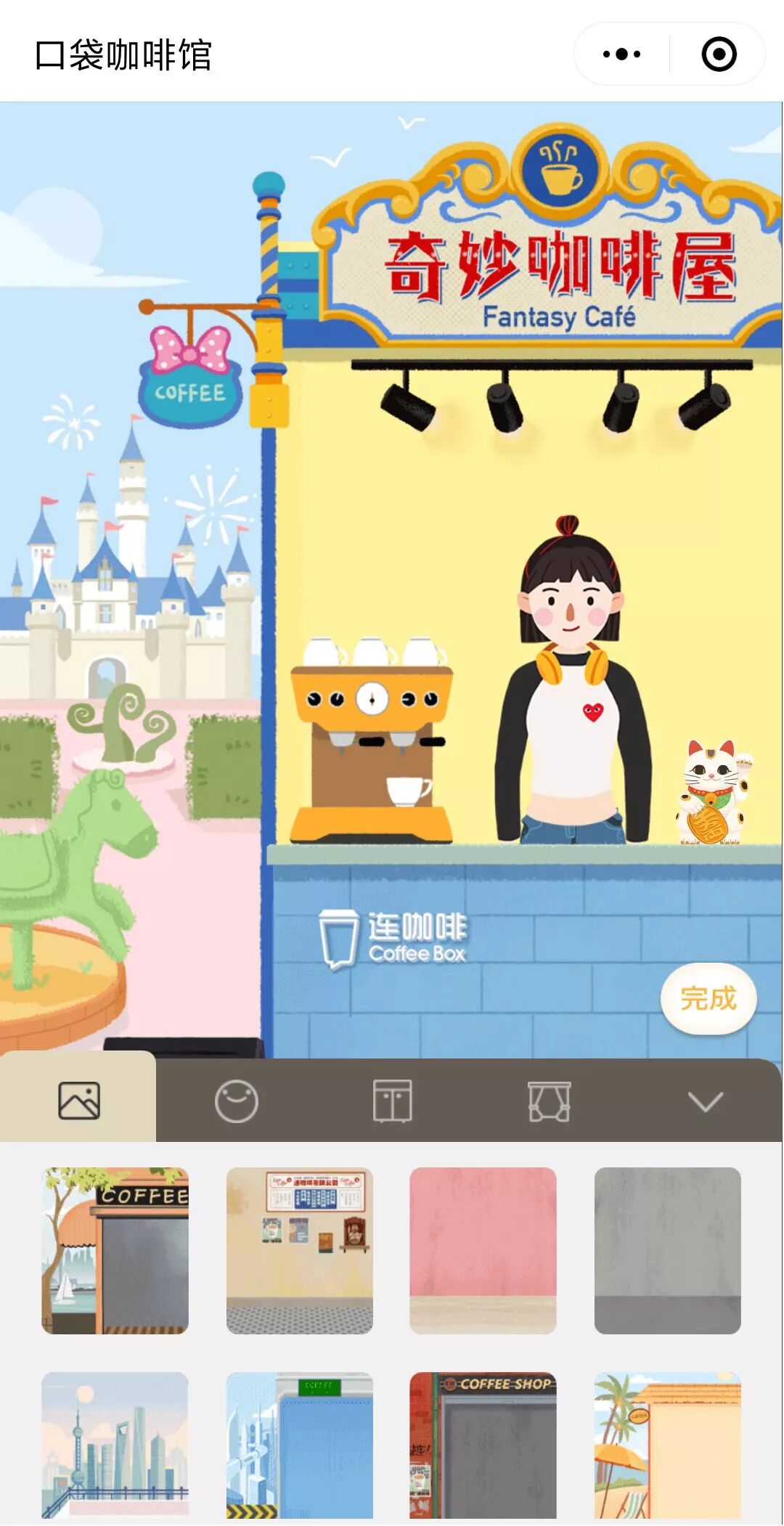 与此同时,连咖啡发现,其实很多白领,尤其是女生,都想过开自己的咖啡馆。于是他们想到,是不是能开发一个小程序,让每个人都有机会来经营自己的小小咖啡馆?
