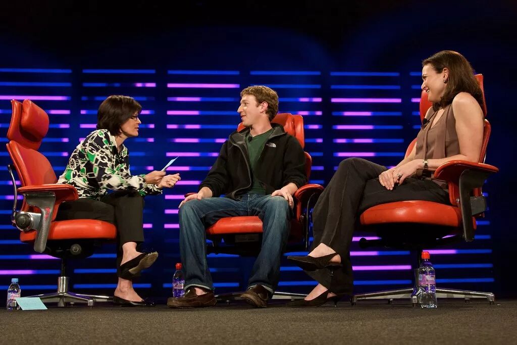 左起:Kara Swisher(作者)、Mark Zukerburg、Sheryl Sandberg(Facebook 副总裁)