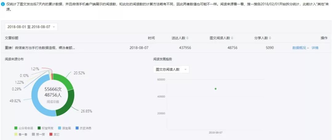 昨天凌晨,微信公众平台后台“统计”页面更新公告,微信公众号后台文章阅读数据将于8月8日起,剔除机器等非自然阅读带来的虚假数据。