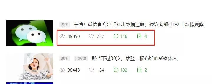 腾讯《一线》报道称,事实上,为了显示真实数据,手机看图文消息底部的阅读数据很早就已使用这一口径统计。