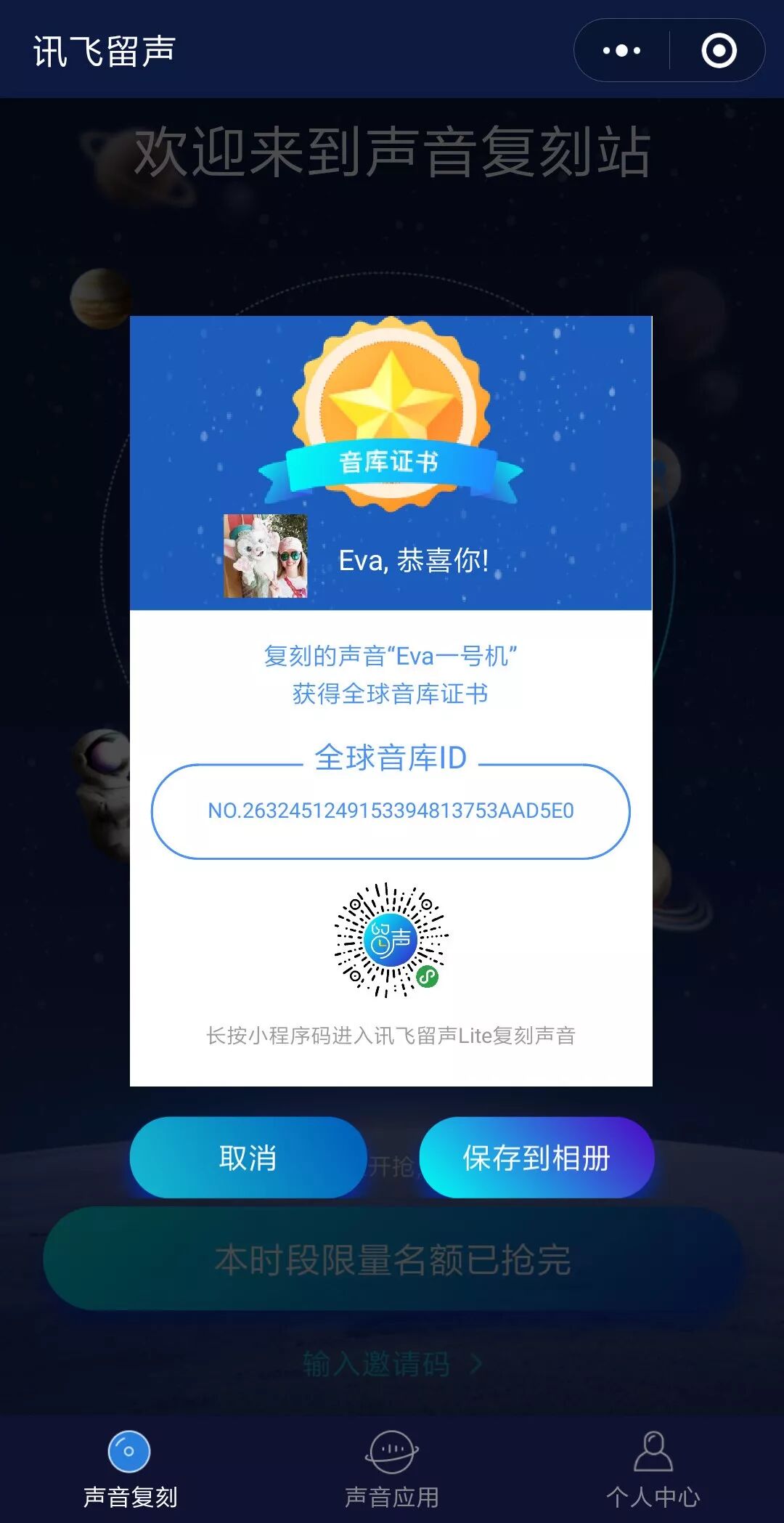 3. 制作完成,获得专属复刻声音。