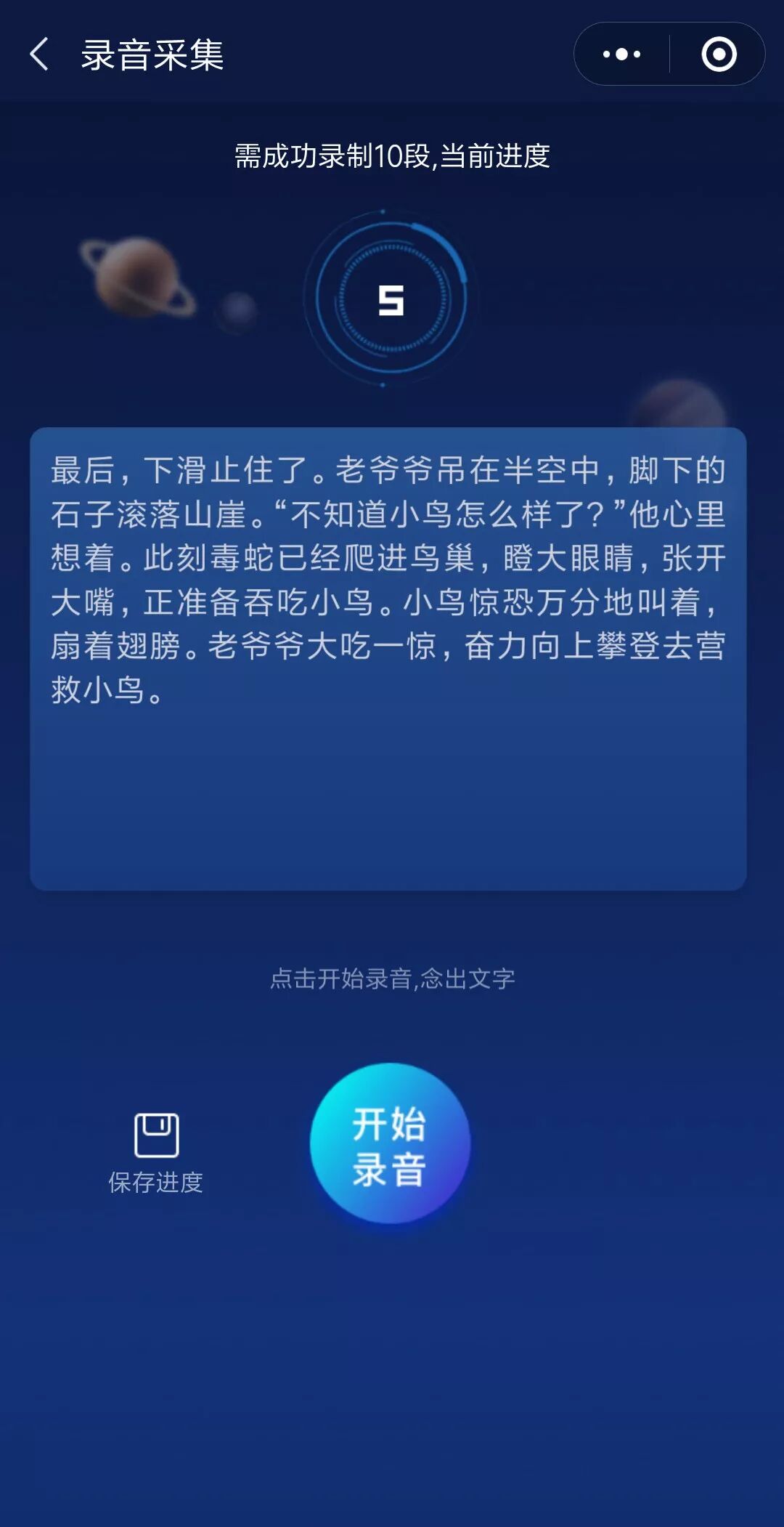 1. 打开小程序,选择“去复刻我的声音”。同意用户协议后,用户需念规定文本,录制10段语音。