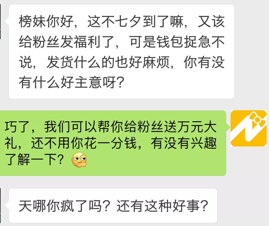 参与这次七夕活动的自媒体人不约而同地表示,这样的活动简直实现了他们自媒体生涯的终极梦想——在家躺着动动手指就能实力宠粉,还能让粉丝惊喜到尖叫。
