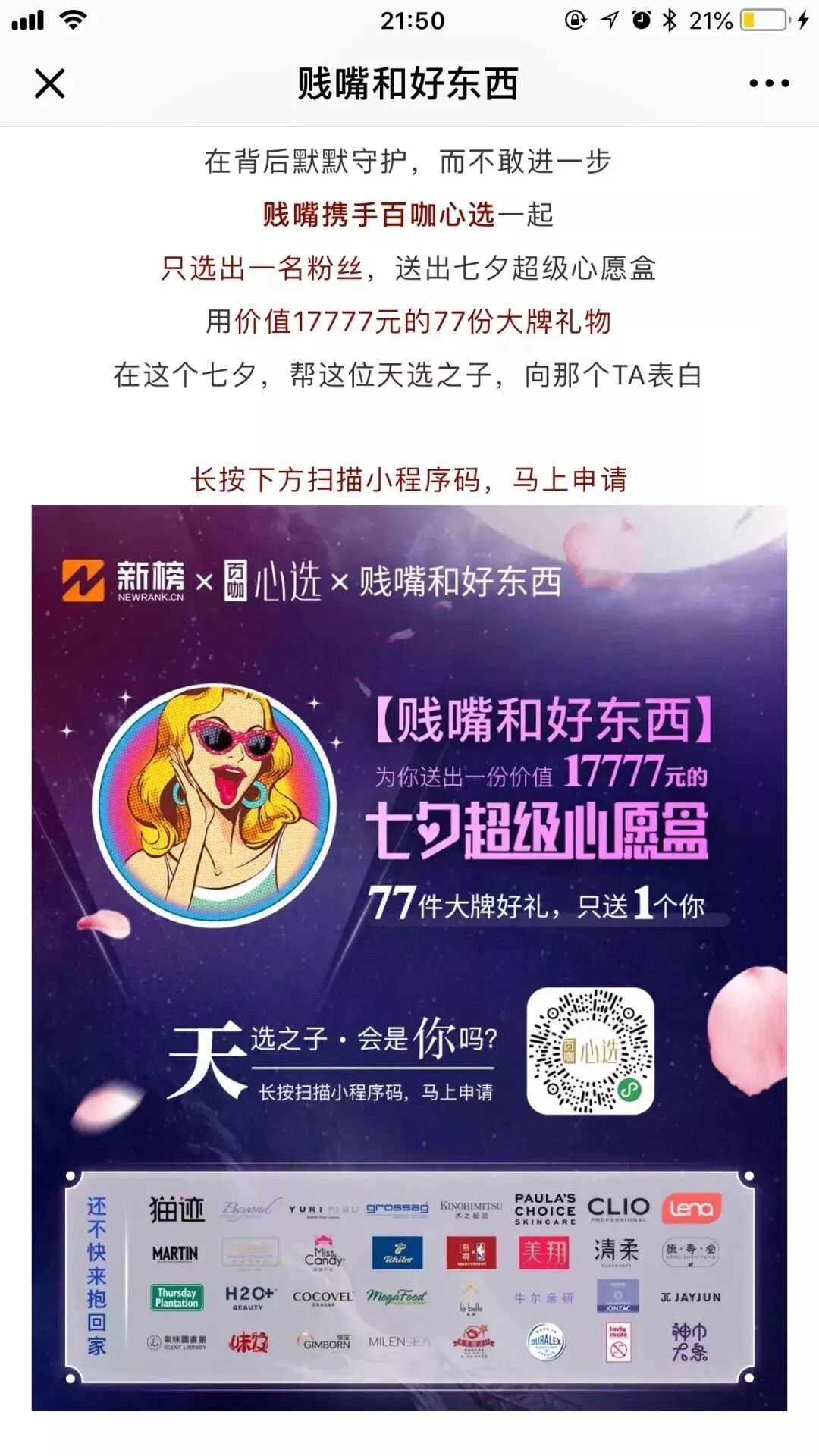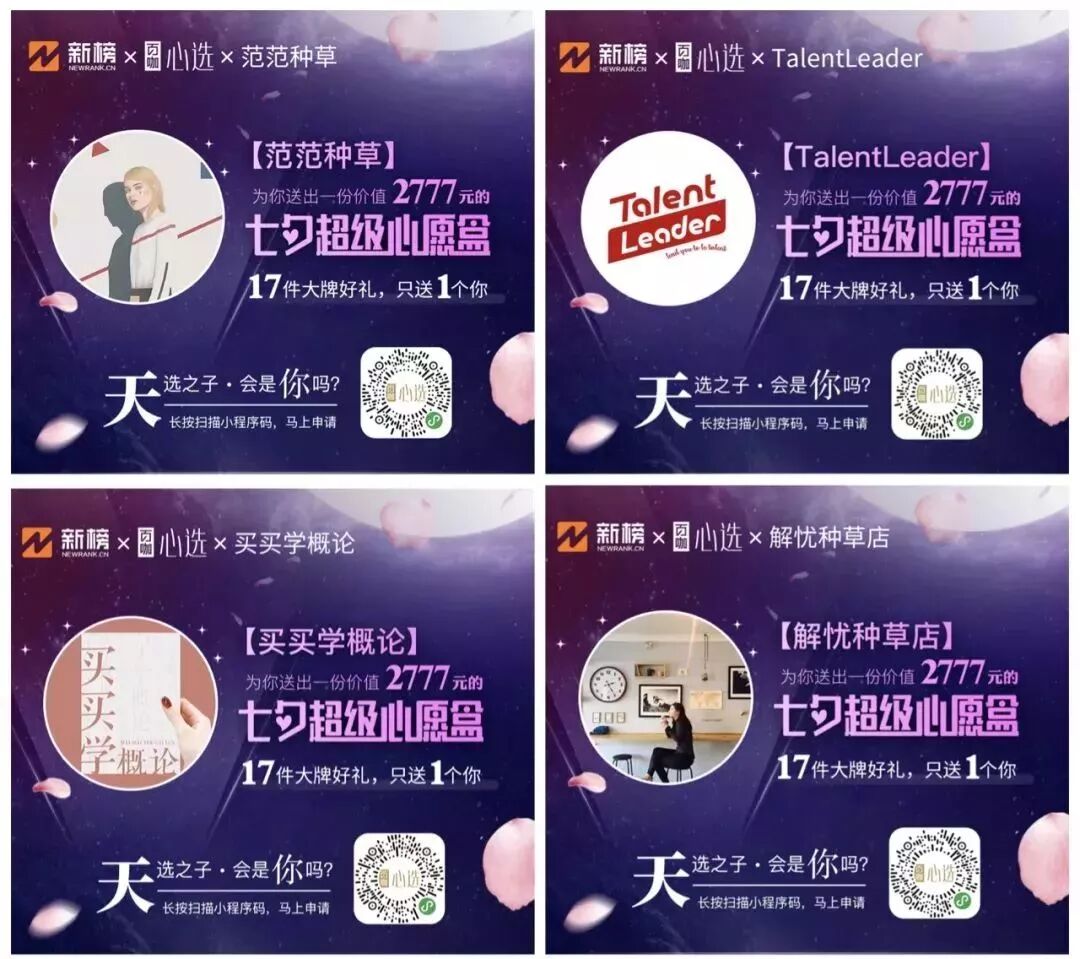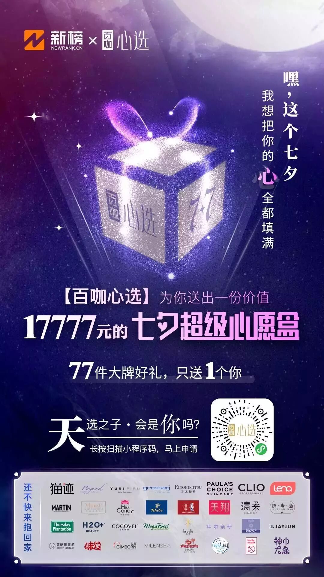 在这次七夕的前一周,新榜和34个品牌达成了深度合作,最终打包出了一份内含77件大牌好礼、价值17777元的七夕超级心愿盒。