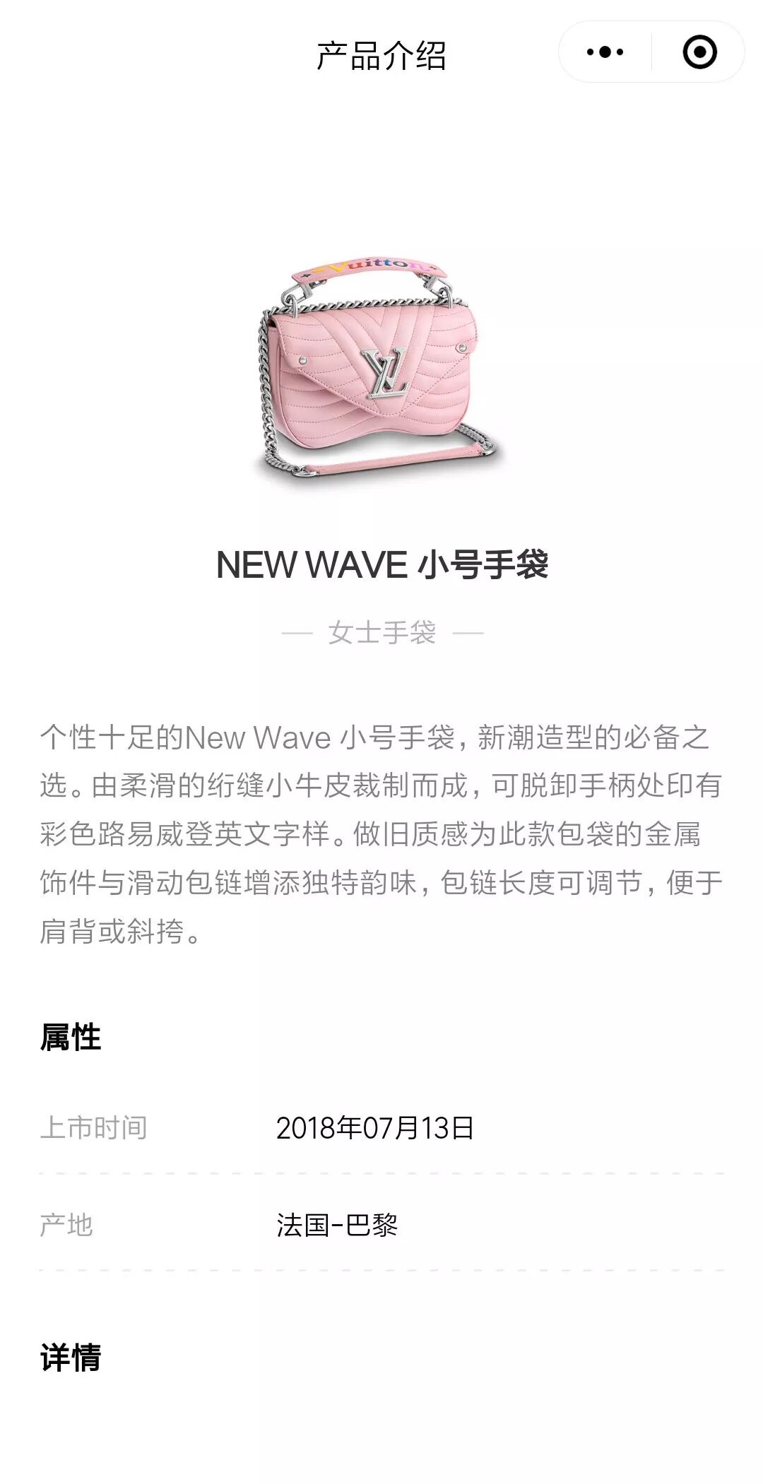 点击产品详情,将跳转至该品牌的微主页的产品介绍页,有产品大图、详细的产品描述、属性和详情。
