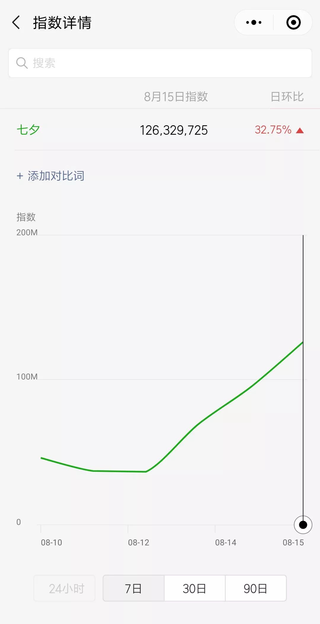作为品牌营销的重要节点,关键词“七夕”8月15日的微信指数已破1.2亿。