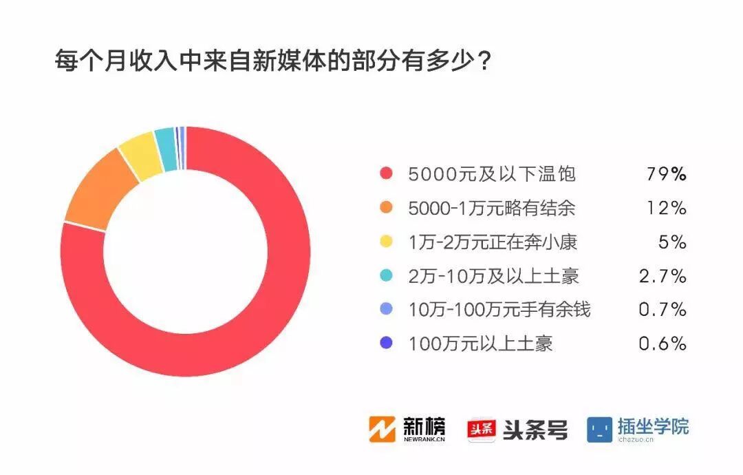 “月薪五万”从此成了新媒体行业的一个梗,公号小编突然被划分成了普通小编和月薪五万小编。但是根据2017年年底新榜的调查报告,91%的新媒体人,月收入不足万元。