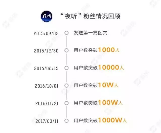 奇怪的事情发生了。不到四个月之后,“夜听”收获了10万粉丝,再过了一个月,这个数字达到100万,半年之后,突破了1000万。