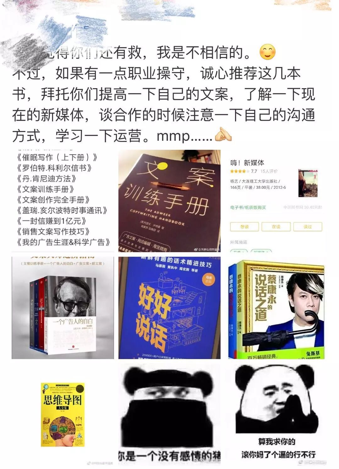 最后想说,其实饭圈里大量的粉丝都很可爱很上进,学习能力爆棚。面对不争气的明星工作室时,也会想各种办法去敲打他们。比如有次榜妹逛微博时看到这样一条: