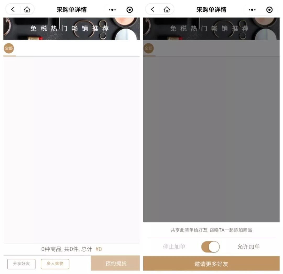 为了提高客单价,“玩转全球免税”上线多人购物功能,让一个用户更方便地帮朋友代买商品。