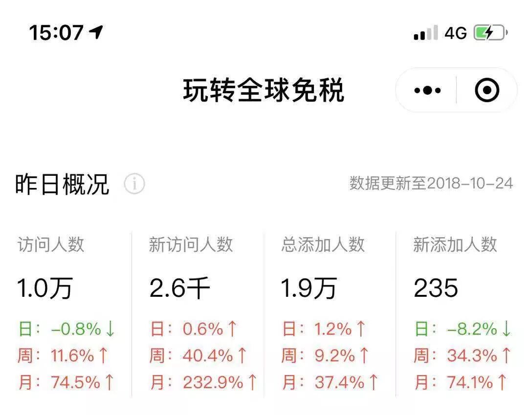 但数据表现却出人意料。据透露,在未进行小程序推广的情况下,小程序日活过万,每日新增用户超过2000。“玩转全球免税”的客单价更是高达2500元。