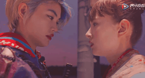 两个人在空无一人的停车场上拥吻,唇色幻化成的小人在面庞上起舞,而她们俩相视一笑也默契地跳起舞来。